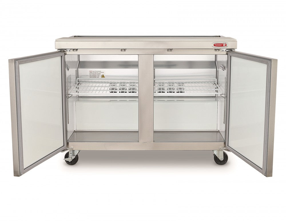 Mesa fría, construida en acero inoxidable para mayor durabilidad e higiene. Puede ser utilizado como mesa o isla de trabajo en cocinas, o como un refrigerador bajo barra. Puerta con sistema de autocierre a 90° y autoapertura hasta 180° que brinda mayor agilidad y mejor desplazamiento al usuario Ruedas con freno Agarradera embutida en la parte delantera del equipo Sistema de refrigeración ecológica